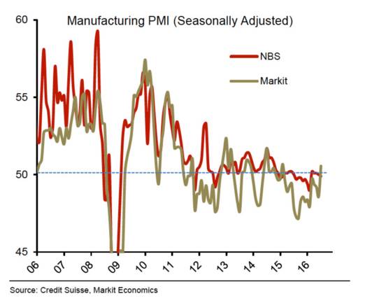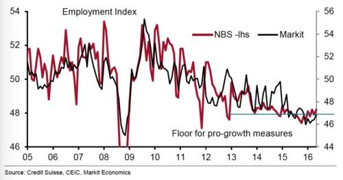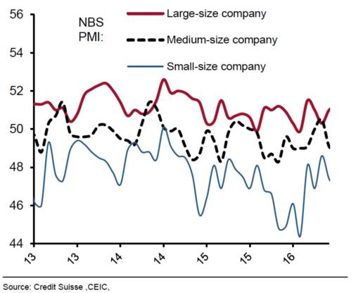 然而,雖然中國非制造業(yè)PMI連續(xù)三個月上漲,瑞信認為這不能阻止制造業(yè)PMI的持續(xù)疲軟。
