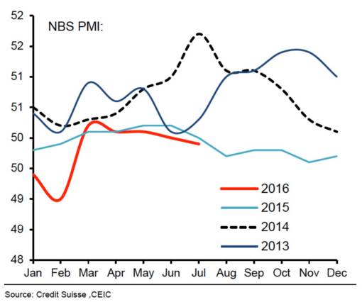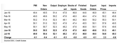 瑞信認為,該差距的擴大表示中國制造業(yè)的增長正越來越多地倚賴政府通過國企來進行刺激。月PMI總值和出口訂單值的下降說明制造業(yè)增長在未來幾個月會變得更慢。數(shù)據(jù)顯示,七月PMI總值和出口訂單值均下降0.1。