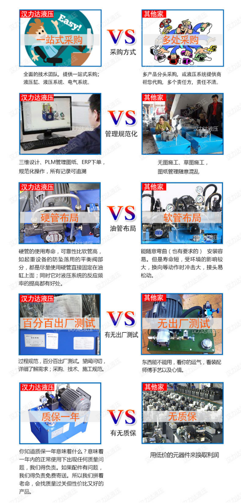 方案確認后,李總向我們詢問我們公司產(chǎn)品的質(zhì)量和價格。。宋先生給李總介紹了漢達的公司歷史,漢力達專注液壓行業(yè)19年了,油缸和液壓泵站一起配套提供的,一站式采購,比較方便,出了問題也只要找到漢達就行,不需要多頭聯(lián)系供應(yīng)商。而且標(biāo)準(zhǔn)液壓站的設(shè)計、加工流程都是非常規(guī)范的,圖紙PLM存檔,客戶資料EPR存檔,做過一次的所有記錄都有,以后照著那份做,液壓經(jīng)銷門店的液壓站便宜的原因之一是在于工人現(xiàn)場組裝,沒有圖紙沒有相關(guān)管理成本。另外漢力達的標(biāo)準(zhǔn)液壓站采用的是硬管布局,外觀精美,使用壽命長,同時它對液壓系統(tǒng)的反應(yīng)頻率的提高有好處。我們的產(chǎn)品質(zhì)保一年,避免售后成本高,我們的供應(yīng)商都是長期合作質(zhì)量穩(wěn)定的合作伙伴李總表示他們也是一樣,做任何一款產(chǎn)品,質(zhì)量性能的保證,才是客戶想要的。